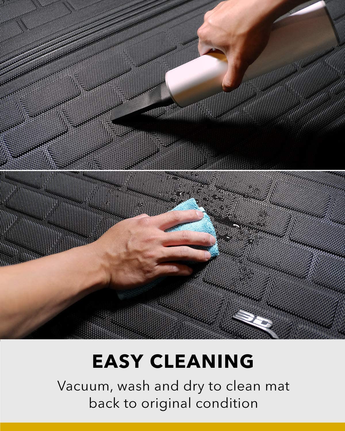 - EASY TO CLEAN - It’s never been easier to clean these mats. Simply wipe clean with a damp cloth, or remove them from your vehicle, hose off and make your cargo liners new again.