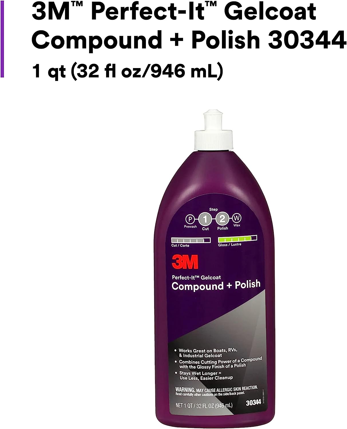 3M 30344 Perfect-It Gelcoat Compound + Polish - 32 oz.