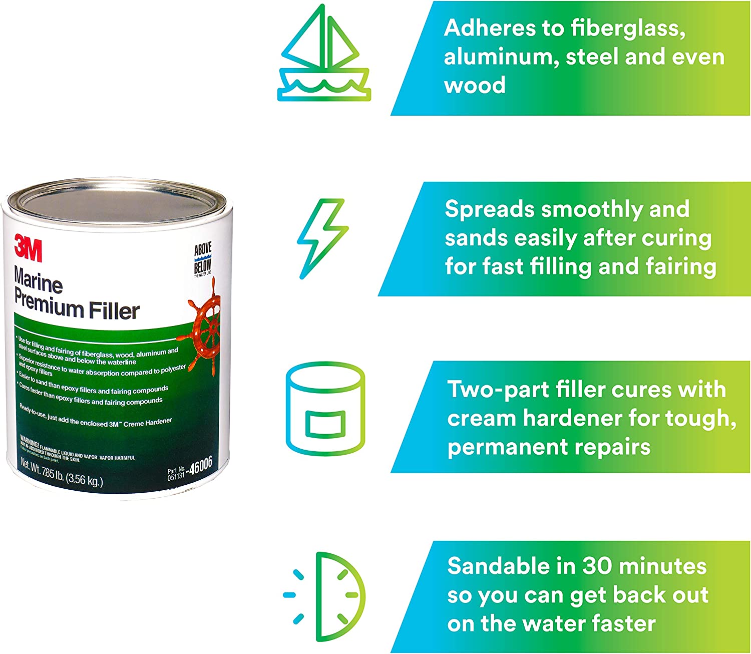 3M 46006 Marine Premium Filler, 1 gal, White