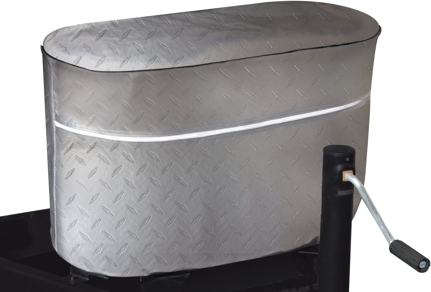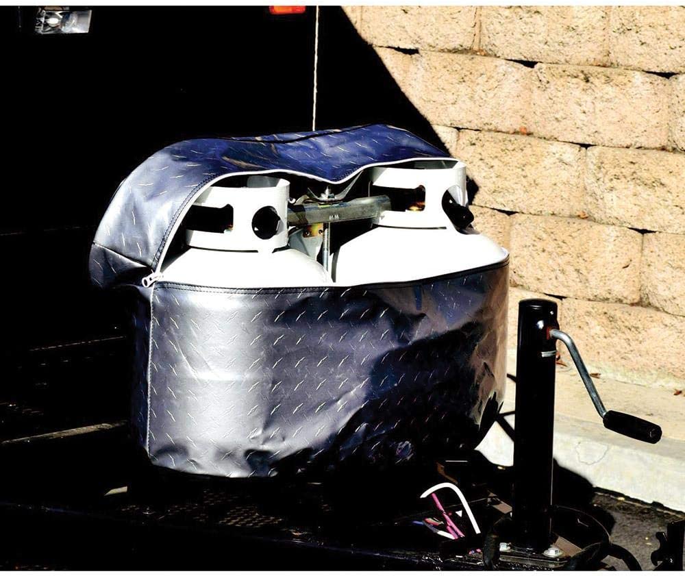- Fit's Double 20 LB propane tanks^The fabric is designed to look like a Diamond Plated Steel and matches the plating on your vehicle^Secures with an elasticized bottom hem and zipper^1 Cover per box^Made from durable Diamond Plated Vinyl fabric and comes with a factory 3-YEAR warranty