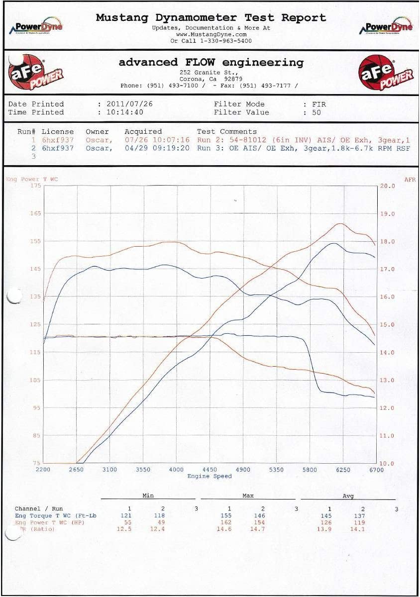 - Outflows the factory intake by up to 56% . Produces an additional 12 horsepower and 15 lbs. x ft. torque