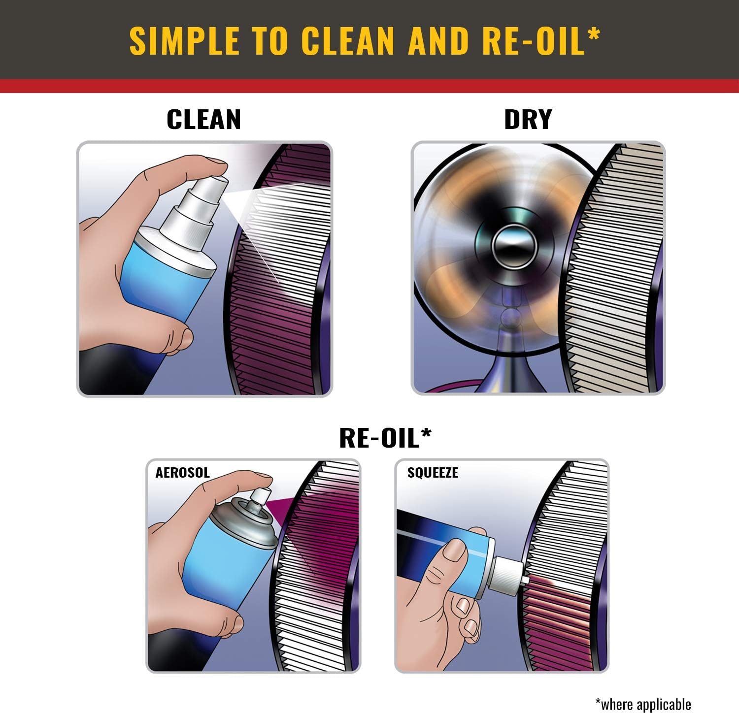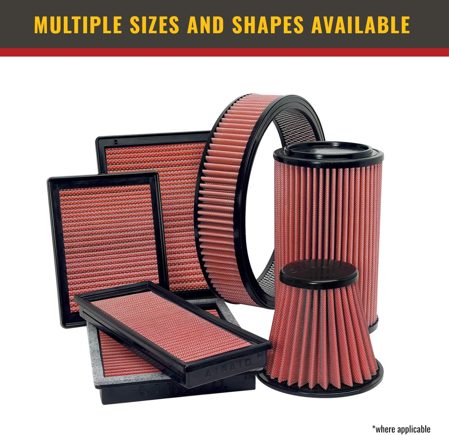 AIRAID 701-470 Universal Clamp-On Air Filter: Round Tapered; 4 in (102 mm) Flange ID; 9 in (229 mm) Height; 6 in (152 mm) Base; 4.625 in (117 mm) Top