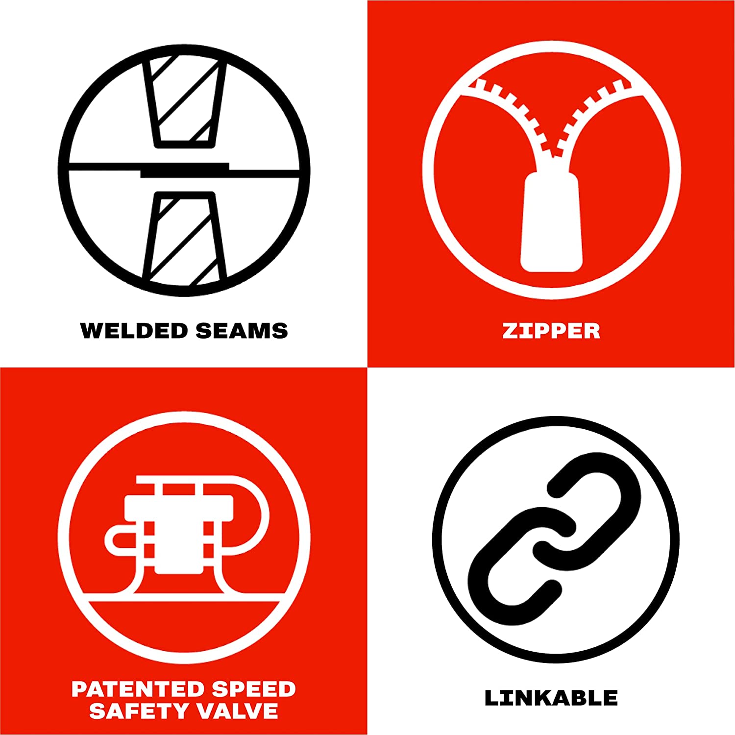 - Welded Seams: Heavy-duty radio frequency welded seams keep the air where it belongs