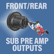 - Outputs - Use the front pre-amp outputs to hook up your speakers (front left / front right)