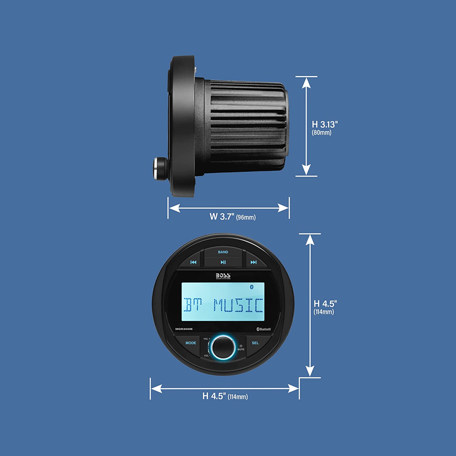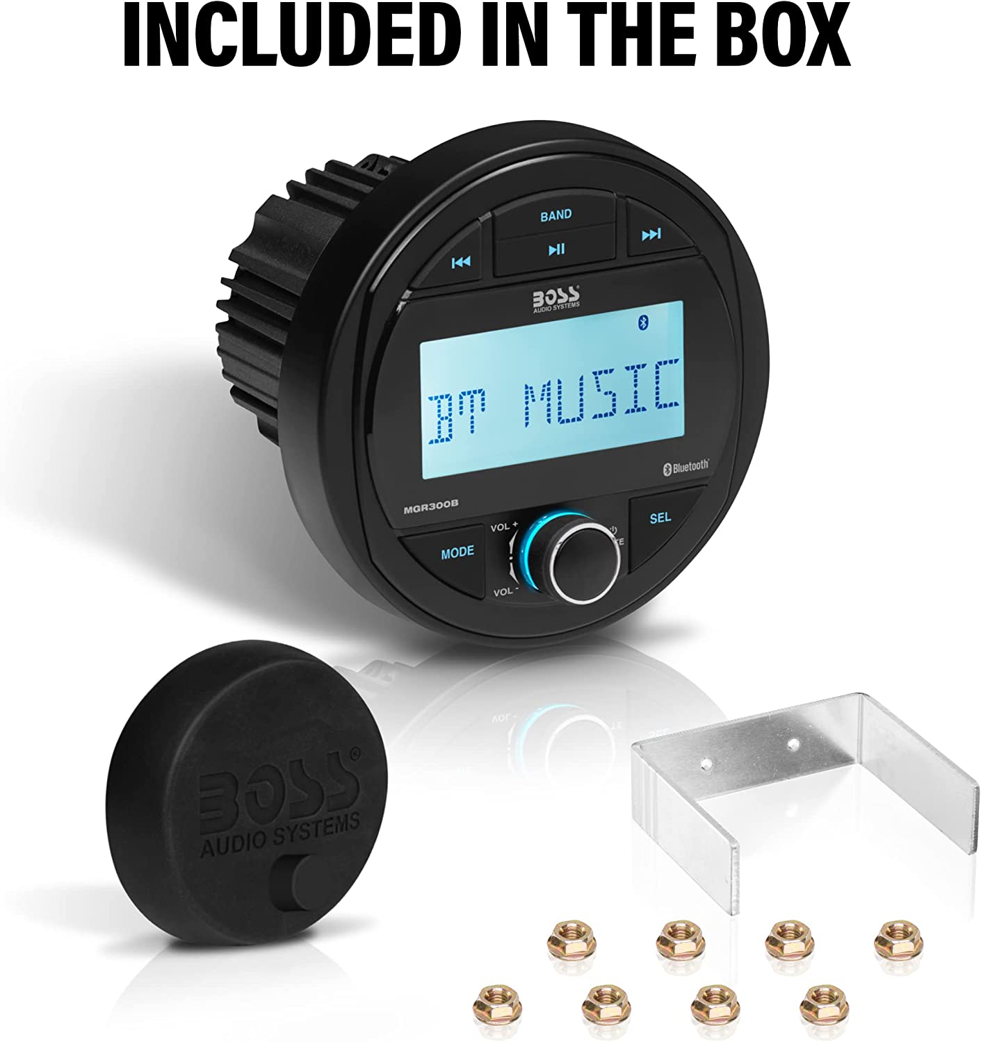 BOSS Audio Systems MGR300B Marine Boat Stereo Sound System Head Unit - No CD Player, Bluetooth Audio, IPX5 Rated, USB, MP3, AM/FM Radio Receiver