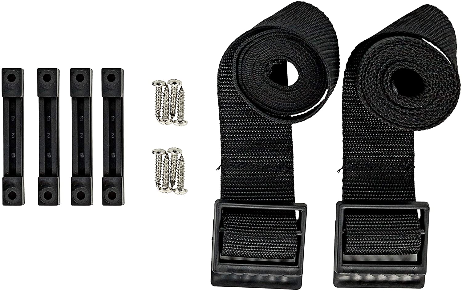 - Includes: (2) straps and (4) strap clamps with screws