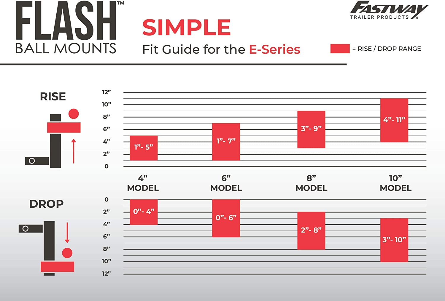 Fastway Flash 42-00-2600 E Series Adjustable Aluminum Ball Mount with 6 Inch Drop, 2 Inch Shank, and Chrome Plated Balls 6" Drop