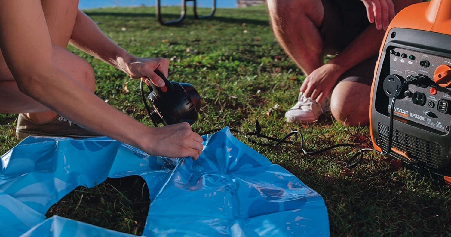 The Generac GP3300i inverter featuring advanced PowerRush technology delivers over 50 percent more starting capacity for your RV essentials and other motor-driven equipment—so you can do more with less. The GP3300i features duplex outlets, a 30A twistlock outlet and USB ports for easy connection and quiet inverter power, perfect for outdoor activities in a compact and lightweight solution.