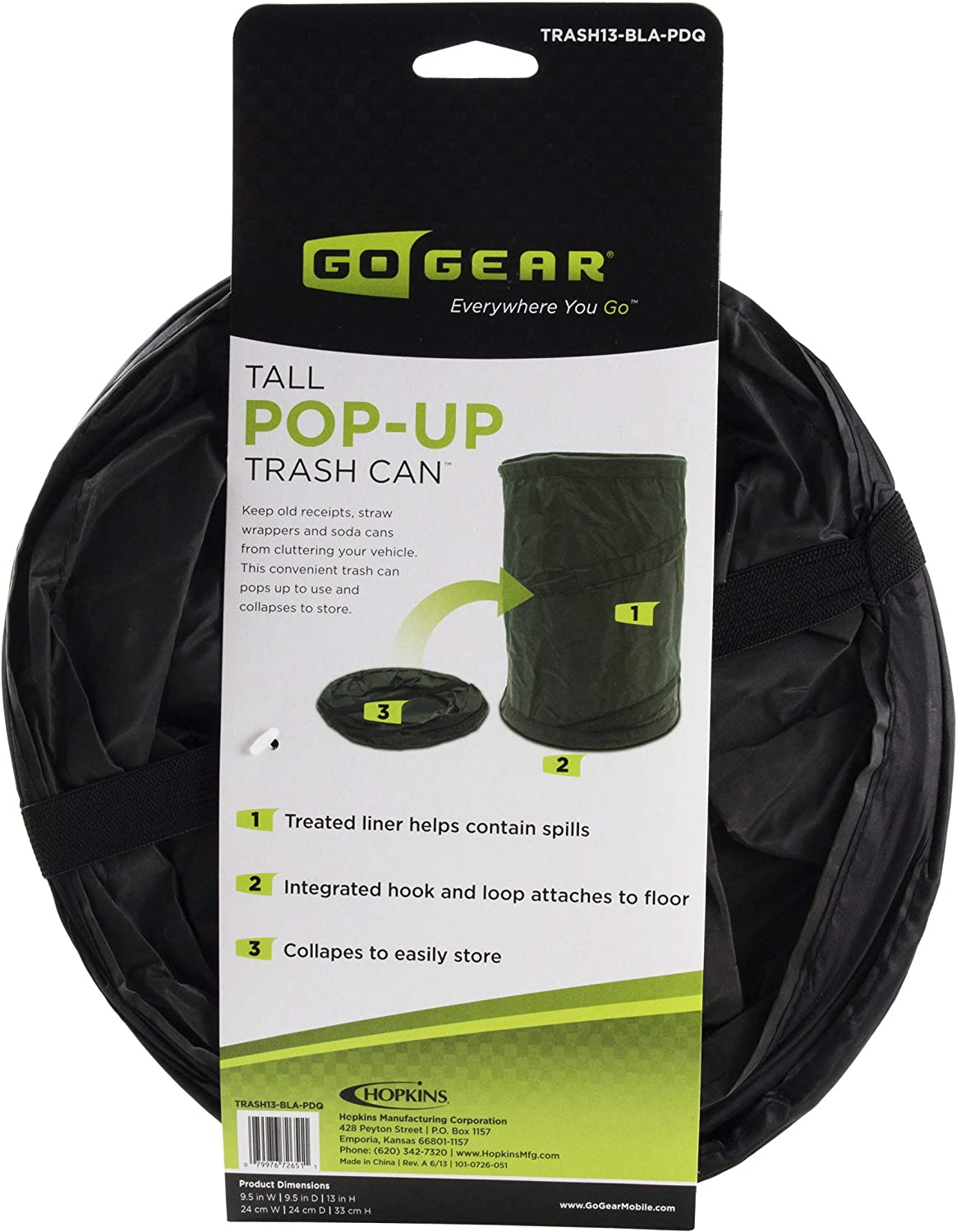 Hopkins Trash 13-BLA-PDQ Go Gear Tall 13" Pop Up Trash Can