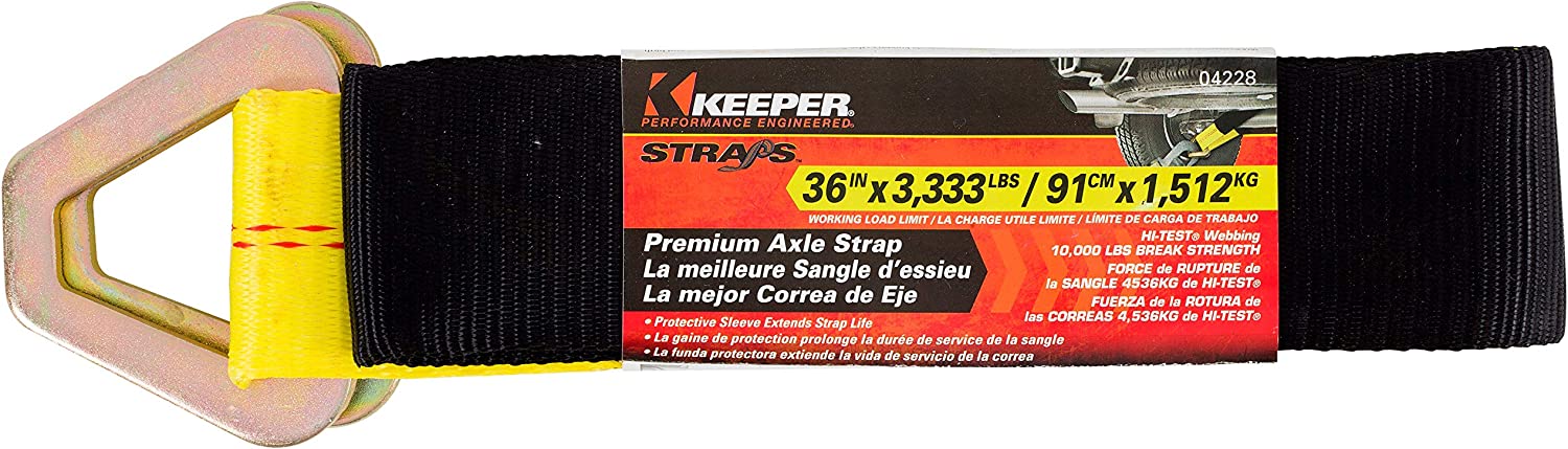 - Quality and Durability: Keeper 36 in. Premium Axle Tie-Down strap features an abrasion and rot-resistant 2 in. Hi-Test webbing to absorb shock during transportation.