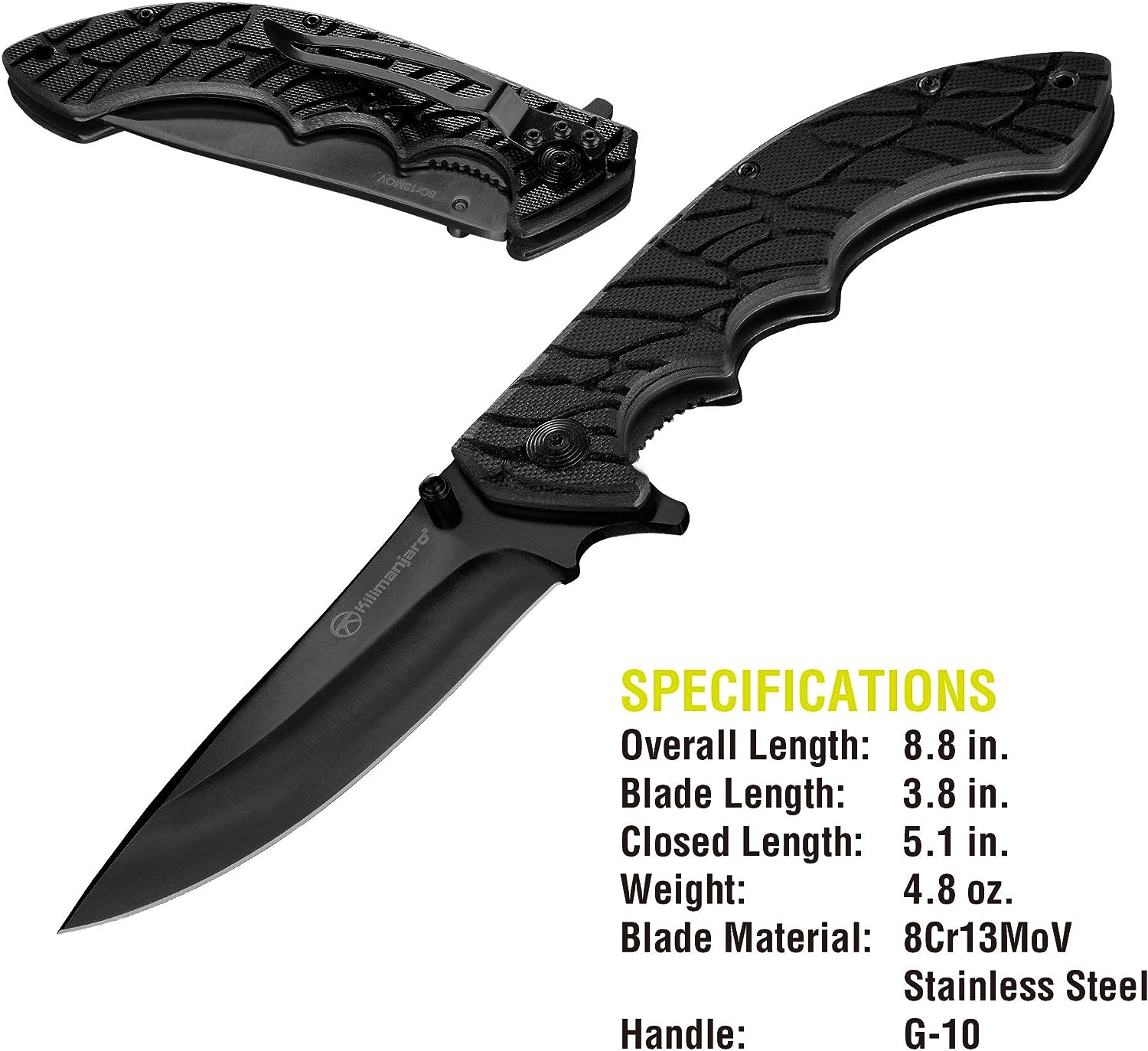 - Overall length 8.8 inches, closed 5.1 inches