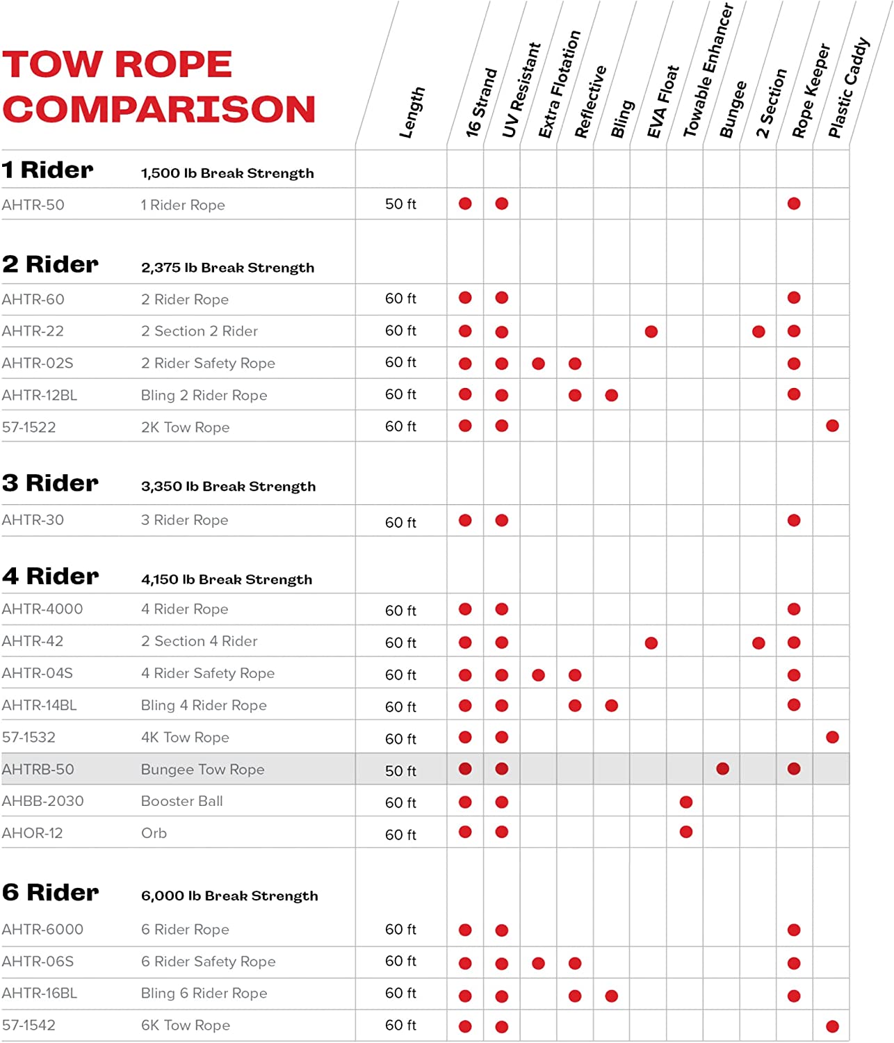 - Rated at 4,150 pounds tensile strength, for 1 - 4 rider tubes