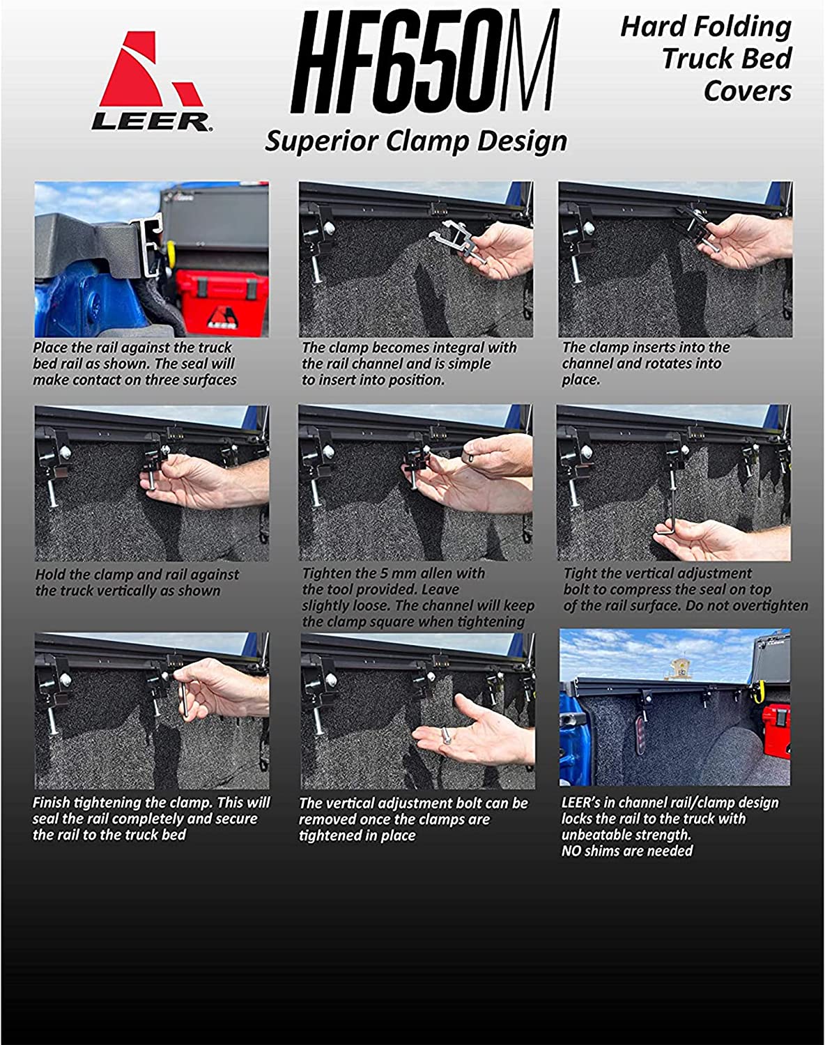 - THREE YEAR LIMITED WARRANTY - The HF650M from LEER comes with a 3-Year Limited Warranty. Warranty is valid only on products that are sold and/or shipped by Leer Tonneau Covers.