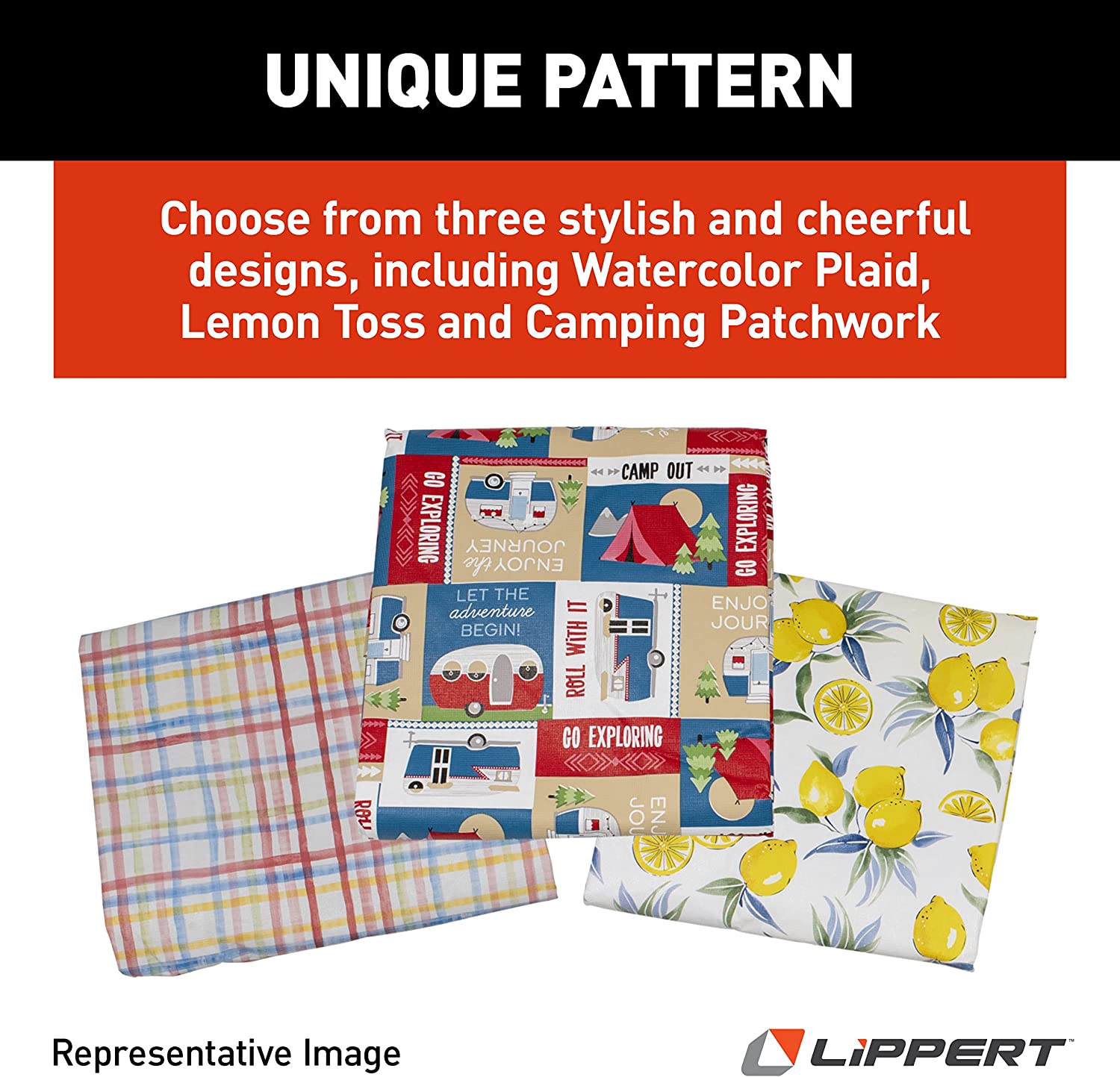 Lippert 2022107834 3 Pc Picnic Table Cover Set - Lemon Toss Print