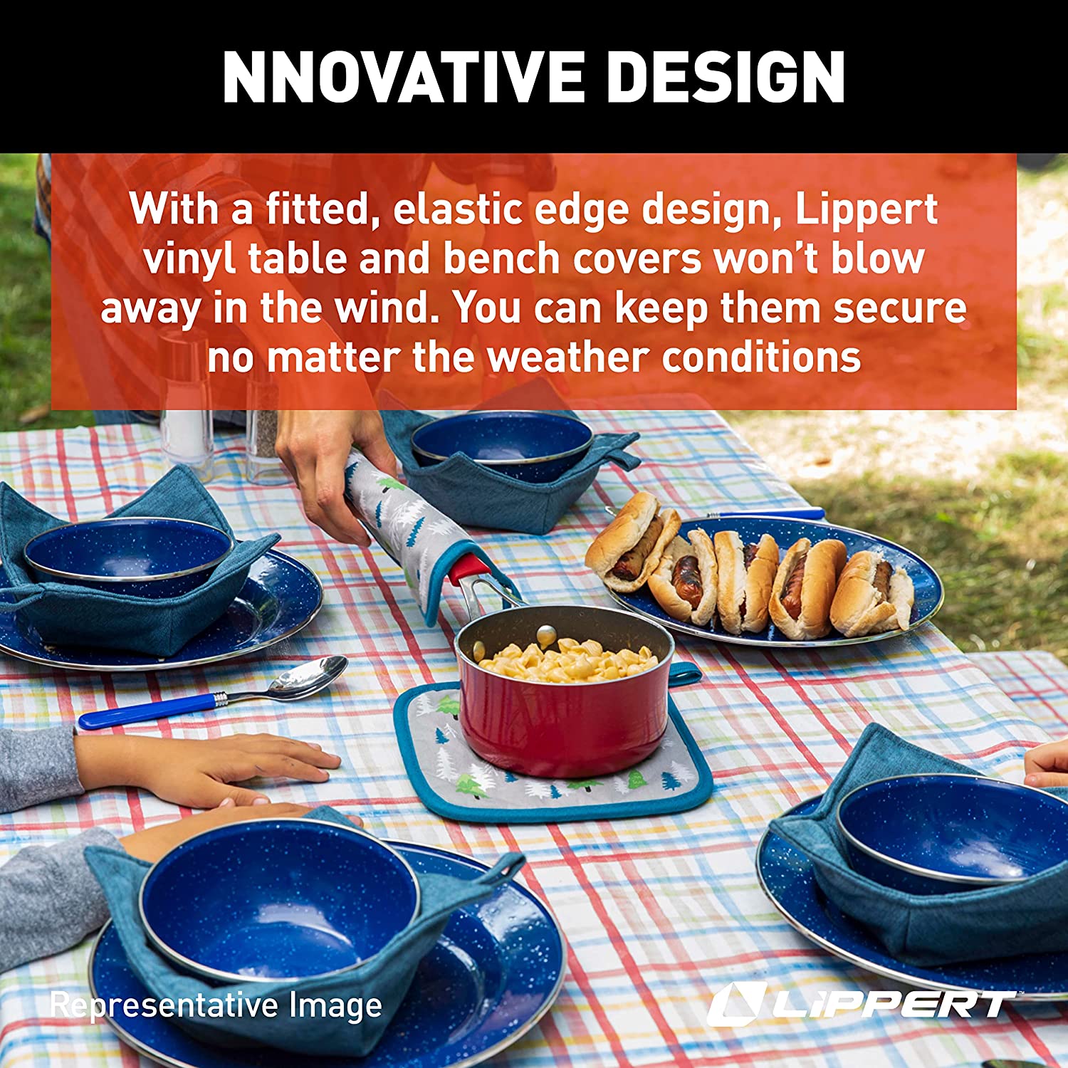 - Tablecloth and bench cover set for camping and picnicking